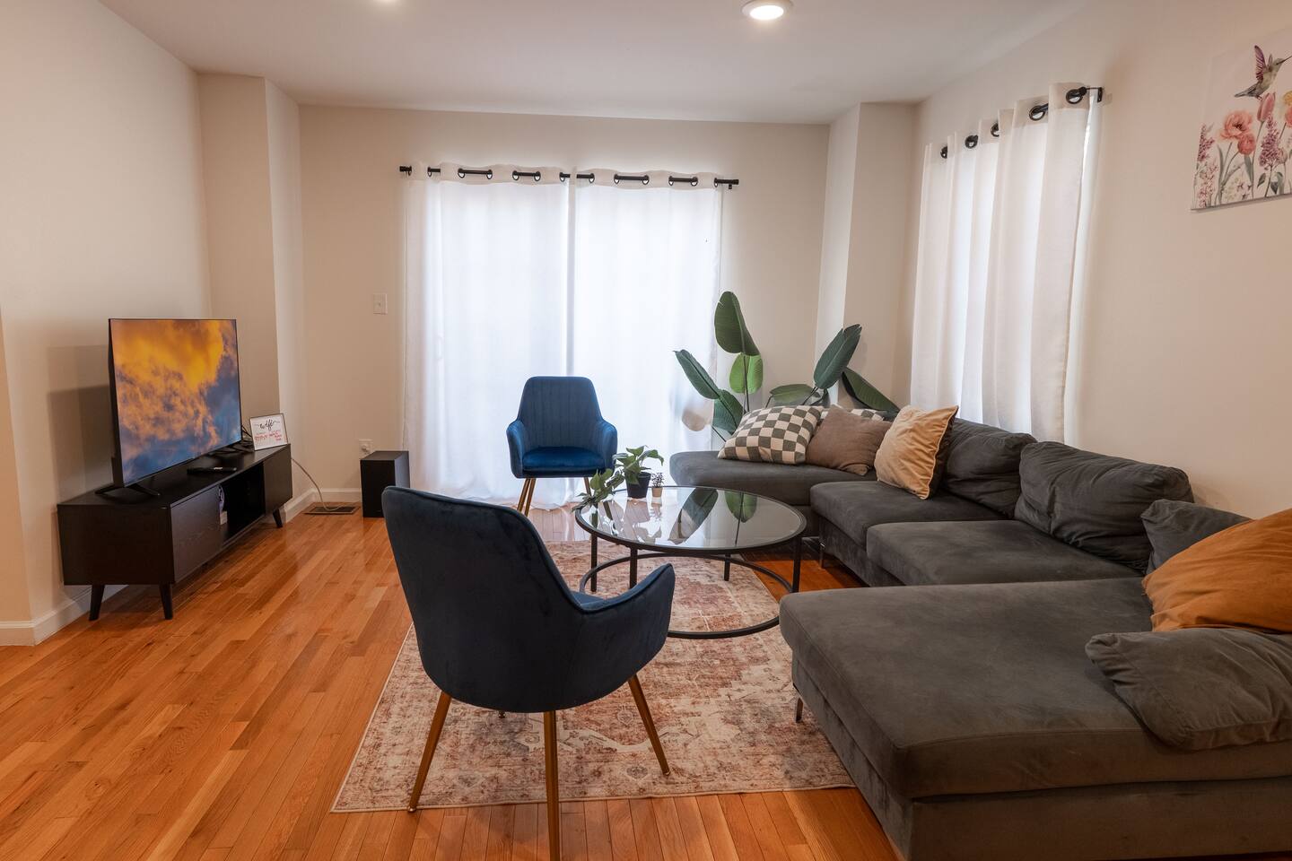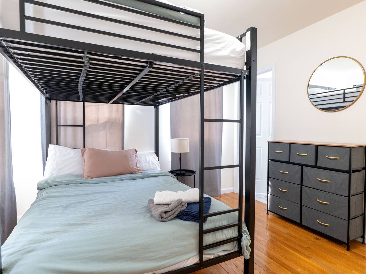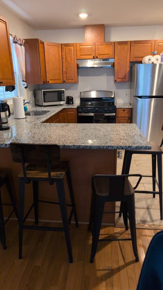 We invite you to immerse yourself in the elegance and tranquility of our spacious 3-bedroom apartment no 2for as many nights as you wish! Relax in the warm and welcoming ambiance of our thoughtfully designed space. Perfectly situated in a prime location, this apartment offers unbeatable convenience for commuters! Famous Attractions: 1. New York City: 30 Min (12.1 Miles) 2. Manhattan: 37 Min (15.2 Miles) 3. Downtown Newark: 11 Min (2.1 Miles) 4. Park Ave Station: 1 Min (0.3 Mile) 5. Cathedral Basilica Of The Sacred Heart: 4 Min (1.2 Miles) 6. Broadway: 10 Min (2.8 Miles) 7. The Jewish Museum Of New Jersey: 6 Min (1.2 Miles) 8. Park Avenue Newark: 6 Min (1.5 Miles) 9. The Newark Museum Of Art: 8 Min (1.7 Miles) 10. Dreyfuss Planetarium: 8 Min (1.7 Miles) 11. Newark Public Library: 8 Min (1.8 Miles) 12. The New Jersey Performing Arts Center: 9 Min (1.8 Miles) 13. New Jersey Historical Society: 10 Min (2.1 Miles) 14. Lincoln Park: 13 Min (2.7 Miles) 15. Journal Square: 19 Min (8.0 Miles) 16. Statue Of Liberty: 26 Min (15.6 Miles) 17. National 9/11 Memorial And Museum: 32 Min (12.0 Miles) 18. Times Square: 32 Min (14.1 Miles) 19. Empire State Building: 33 Min (14.0 Miles) 20. Top Of The Rock: 35 Min (14.9 Miles) 21. The Metropolitan Museum Of Art: 45 Min (16.6 Miles) 22. Newark Penn Station: 13 min (2.4 miles) 23. Branch Brook Park: 2 min (0.7 mile) 24. Military Park: 9 min (1.8 miles) 25. Presidential Park: 12 min (2.3 miles) 26. Ironbound: 17 min (3.8 miles) 27. The High Line: 25 min (13.9 miles) 28. Central Park: 34 min (14.7 miles) 29. Teardrop Park: 29 min (11.6 miles) 30. Tear Drop Memorial: 26 min (15.0 miles) 31. Vessel: 25 min (13.8 miles) 32. Red Bull Arena: 13 min (3.4 miles) 33. Newark Liberty International Airport: 15 min (11.8 miles) 34. NJIT: 5 min (1.2 miles) Restaurants: 1. La Parada Dominicana/Santo Domingo Stop Restaurant: 2 Min (0.4 Mile) 2. Tony's Hot Dogs: 2 Min (0.6 Mile) 3. Dania's Restaurant: 3 Min (0.6 Mile) 4. La Esperanza Restaurant: 4 Min (0.7 Mile) 5. Coney Island Restaurant: 4 Min (0.8 Mile) 6. Calandra's Bakery: 5 Min (1.0 Mile) 7. El Paisa Happy Chicken: 5 Min (1.0 Mile) 8. Bloomfield Avenue BBQ: 5 Min (1.1 Miles) 9. Manny Restaurant: 6 Min (1.0 Mile) 10. TeaRx Cafe-Newark(R): 6 Min (1.3 Miles) 11. The Plaza Diner: 9 Min (2.3 Miles) 12. Aroma & Sabor Restaurant: 11 Min (0.5 Mile) Malls: 1. Brick Church Plaza: 7 Min (2.4 Miles) 2. Franklin Square Plaza: 10 Min (2.8 Miles) 3. Essex Green Shopping Center: 9 Min (6.3 Miles) 4. The Mall At Short Hills: 21 Min (13.2 Miles) 5. The Mills At Jersey Gardens: 21 Min (13.2 Miles) 6. Westfield Garden State Plaza: 20 Min (16.9 Miles) 7. Menlo Park Mall: 24 Min (18.7 Miles) 8. Brunswick Square: 41 Min (32.5 Miles) 9. Costco Wholesale: 18 Minutes (8.3 Miles) 10. Lidl: 14 Minutes (4.5 Miles) 11. Home Depot: 11 Minutes (2.9 Miles) Bars And Nightclubs: 1. La Roca Night Club: 2 Min (0.4 Mile) 2. Lucky 7: 2 Min (0.6 Mile) 3. Bar Envy: 5 Min (0.9 Mile) 4. Misuero Karaoke Latino The Show: 7 Min (1.2 Miles) Medical Centers And Hospitals: 1. Urgent Care & Walk-In Medical Suite: 6 Min (2.1 Miles) 2. Rutgers Health: 8 Min (1.2 Miles) 3. CareWell Health Medical Center: 8 Min (2.5 Miles) 4. Serene Health Center: 8 Min (1.7 Miles) 5. St Michael's Medical Ctr: 9 Min (1.3 Miles) 6. Silver Lake Hospital: 9 Min (1.7 Miles) 7. University Hospital: 9 Min (1.3 Miles) 8. Newark Community Health Center: 11 Min (2.8 Miles) NO PARTIES, CELEBRATIONS OR GATHERINGS IN THE APT Our Apartment is perfect for: Travel Nurses Students & Faculty Business Professionals Leisure Travels Sports & Concert Lovers Travelers and Explorers Tourists Small Families Whether your journey is for business or pleasure, our place promises to be your sanctuary, facilitating relaxation and rejuvenation. Upon entering, you'll immediately sense a positive energy that uplifts your spirits and creates a welcoming atmosphere. Every corner of this stylish 3-bedroom apt exudes elegance, from its carefully curated design to its thoughtful decor, catering perfectly to both short and long-term stays. Enjoy elegant floors adorned with area rugs, enhancing maneuverability and ensuring your comfort is paramount. The bedrooms provide a serene retreat, ideal for unwinding after a busy day, ensuring a restful night's sleep. LIVING AREA - Gather around in this area to watch your favorite TV shows, and unwind! Comfortable sofa that can sleep one as well. Smart TV Elegant nesting tables Large stylish rug KITCHEN & DINING Our kitchen has all the essentials mentioned in amenities right at your fingertips! Plus, 2 bar stools are perfectly placed next to the kitchen counter for easy and enjoyable meals. Microwave Stove/Oven Refrigerator/Freezer Sink (Hot/Cold Water) Glasses & Cups Silverware Plates Pots & Pans SLEEPING ARRANGEMENTS 1 BEDROOM - Queen bed for 2, 2nd BEROOM - Pull out bed for 2 with Shared bathroom. 3rd Master BEDROOM with Queen size BUNK BED for 4 & attached bathroom All bedrooms have CLOSETS. SOFA in living area to sleep 1 Indulge in a restful slumber in our beautifully furnished bedroom, complete with amenities designed to ensure a tranquil and serene stay. Beds with Pillows, Linens, and Sheets Closet with Hangers Night Stands with lamps BATHROOM Our stunning bathrooms comes fully stocked with all the essential toiletries you'll need for a comfortable stay! Shower Vanity Mirror Toilet Towels Hair Dryer Shampoo & Conditioner Come unwind and savor the comfort of our sleek, contemporary Apt in the heart of Newark, New Jersey!