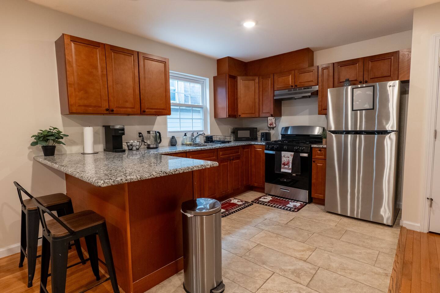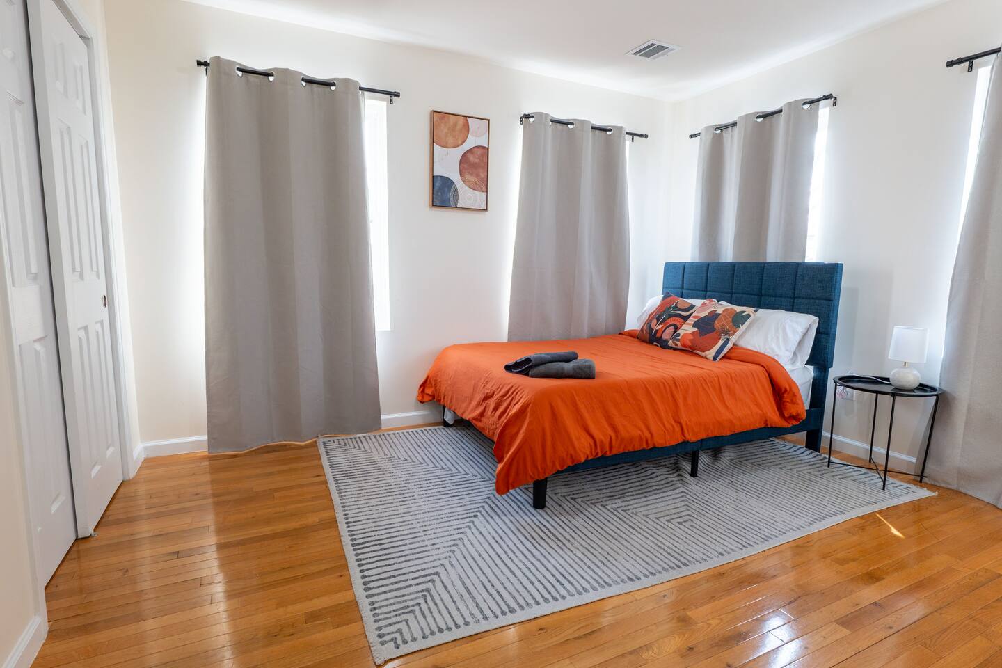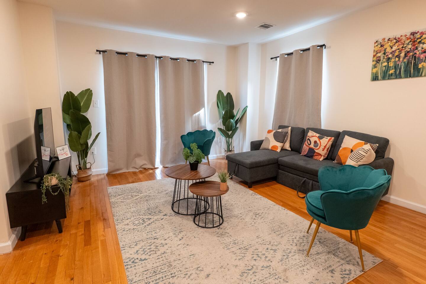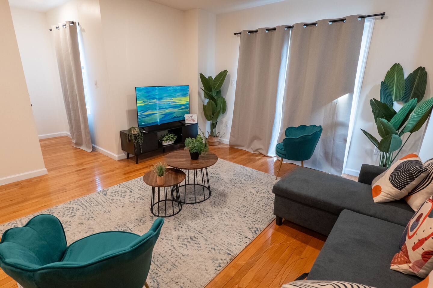 We invite you to immerse yourself in the elegance and tranquility of our spacious 3-bedroom apartment no 3 for as many nights as you wish! Relax in the warm and welcoming ambiance of our thoughtfully designed space. Perfectly situated in a prime location, this apartment offers unbeatable convenience for commuters! Famous Attractions: 1. New York City: 30 Min (12.1 Miles) 2. Manhattan: 37 Min (15.2 Miles) 3. Downtown Newark: 11 Min (2.1 Miles) 4. Park Ave Station: 1 Min (0.3 Mile) 5. Cathedral Basilica Of The Sacred Heart: 4 Min (1.2 Miles) 6. Broadway: 10 Min (2.8 Miles) 7. The Jewish Museum Of New Jersey: 6 Min (1.2 Miles) 8. Park Avenue Newark: 6 Min (1.5 Miles) 9. The Newark Museum Of Art: 8 Min (1.7 Miles) 10. Dreyfuss Planetarium: 8 Min (1.7 Miles) 11. Newark Public Library: 8 Min (1.8 Miles) 12. The New Jersey Performing Arts Center: 9 Min (1.8 Miles) 13. New Jersey Historical Society: 10 Min (2.1 Miles) 14. Lincoln Park: 13 Min (2.7 Miles) 15. Journal Square: 19 Min (8.0 Miles) 16. Statue Of Liberty: 26 Min (15.6 Miles) 17. National 9/11 Memorial And Museum: 32 Min (12.0 Miles) 18. Times Square: 32 Min (14.1 Miles) 19. Empire State Building: 33 Min (14.0 Miles) 20. Top Of The Rock: 35 Min (14.9 Miles) 21. The Metropolitan Museum Of Art: 45 Min (16.6 Miles) 22. Newark Penn Station: 13 min (2.4 miles) 23. Branch Brook Park: 2 min (0.7 mile) 24. Military Park: 9 min (1.8 miles) 25. Presidential Park: 12 min (2.3 miles) 26. Ironbound: 17 min (3.8 miles) 27. The High Line: 25 min (13.9 miles) 28. Central Park: 34 min (14.7 miles) 29. Teardrop Park: 29 min (11.6 miles) 30. Tear Drop Memorial: 26 min (15.0 miles) 31. Vessel: 25 min (13.8 miles) 32. Red Bull Arena: 13 min (3.4 miles) 33. Newark Liberty International Airport: 15 min (11.8 miles) 34. NJIT: 5 min (1.2 miles) Restaurants: 1. La Parada Dominicana/Santo Domingo Stop Restaurant: 2 Min (0.4 Mile) 2. Tony's Hot Dogs: 2 Min (0.6 Mile) 3. Dania's Restaurant: 3 Min (0.6 Mile) 4. La Esperanza Restaurant: 4 Min (0.7 Mile) 5. Coney Island Restaurant: 4 Min (0.8 Mile) 6. Calandra's Bakery: 5 Min (1.0 Mile) 7. El Paisa Happy Chicken: 5 Min (1.0 Mile) 8. Bloomfield Avenue BBQ: 5 Min (1.1 Miles) 9. Manny Restaurant: 6 Min (1.0 Mile) 10. TeaRx Cafe-Newark(R): 6 Min (1.3 Miles) 11. The Plaza Diner: 9 Min (2.3 Miles) 12. Aroma & Sabor Restaurant: 11 Min (0.5 Mile) Malls: 1. Brick Church Plaza: 7 Min (2.4 Miles) 2. Franklin Square Plaza: 10 Min (2.8 Miles) 3. Essex Green Shopping Center: 9 Min (6.3 Miles) 4. The Mall At Short Hills: 21 Min (13.2 Miles) 5. The Mills At Jersey Gardens: 21 Min (13.2 Miles) 6. Westfield Garden State Plaza: 20 Min (16.9 Miles) 7. Menlo Park Mall: 24 Min (18.7 Miles) 8. Brunswick Square: 41 Min (32.5 Miles) 9. Costco Wholesale: 18 Minutes (8.3 Miles) 10. Lidl: 14 Minutes (4.5 Miles) 11. Home Depot: 11 Minutes (2.9 Miles) Bars And Nightclubs: 1. La Roca Night Club: 2 Min (0.4 Mile) 2. Lucky 7: 2 Min (0.6 Mile) 3. Bar Envy: 5 Min (0.9 Mile) 4. Misuero Karaoke Latino The Show: 7 Min (1.2 Miles) Medical Centers And Hospitals: 1. Urgent Care & Walk-In Medical Suite: 6 Min (2.1 Miles) 2. Rutgers Health: 8 Min (1.2 Miles) 3. CareWell Health Medical Center: 8 Min (2.5 Miles) 4. Serene Health Center: 8 Min (1.7 Miles) 5. St Michael's Medical Ctr: 9 Min (1.3 Miles) 6. Silver Lake Hospital: 9 Min (1.7 Miles) 7. University Hospital: 9 Min (1.3 Miles) 8. Newark Community Health Center: 11 Min (2.8 Miles) NO PARTIES, CELEBRATIONS OR GATHERINGS IN THE APT Our Apartment is perfect for: Travel Nurses Students & Faculty Business Professionals Leisure Travels Sports & Concert Lovers Travelers and Explorers Tourists Small Families Whether your journey is for business or pleasure, our place promises to be your sanctuary, facilitating relaxation and rejuvenation. Upon entering, you'll immediately sense a positive energy that uplifts your spirits and creates a welcoming atmosphere. Every corner of this stylish 3-bedroom apt exudes elegance, from its carefully curated design to its thoughtful decor, catering perfectly to both short and long-term stays. Enjoy elegant floors adorned with area rugs, enhancing maneuverability and ensuring your comfort is paramount. The bedrooms provide a serene retreat, ideal for unwinding after a busy day, ensuring a restful night's sleep. LIVING AREA - Gather around in this area to watch your favorite TV shows, and unwind! Comfortable SOFA BED that can sleep two as well. Smart TV Elegant nesting tables Large stylish rug KITCHEN & DINING Our kitchen has all the essentials mentioned in amenities right at your fingertips! Plus, 2 bar stools are perfectly placed next to the kitchen counter for easy and enjoyable meals. Microwave Stove/Oven Refrigerator/Freezer Sink (Hot/Cold Water) Glasses & Cups Silverware Plates Pots & Pans SLEEPING ARRANGEMENTS - 10 1 BEDROOM - Queen bed for 2, 2nd BEROOM - Pull out bed for 2 with Shared bathroom. 3rd Master BEDROOM with Queen size BUNK BED for 4 & attached bathroom All bedrooms have CLOSETS. SOFA BED in living area to sleep 2 Indulge in a restful slumber in our beautifully furnished bedroom, complete with amenities designed to ensure a tranquil and serene stay. BEDROOMS Beds with Pillows, Linens, and Sheets Closet with Hangers Night Stands with lamps BATHROOM Our stunning bathrooms comes fully stocked with all the essential toiletries you'll need for a comfortable stay! Shower Vanity Mirror Toilet Towels Hair Dryer Shampoo & Conditioner Come unwind and savor the comfort of our sleek, contemporary Apt in the heart of Newark, New Jersey!