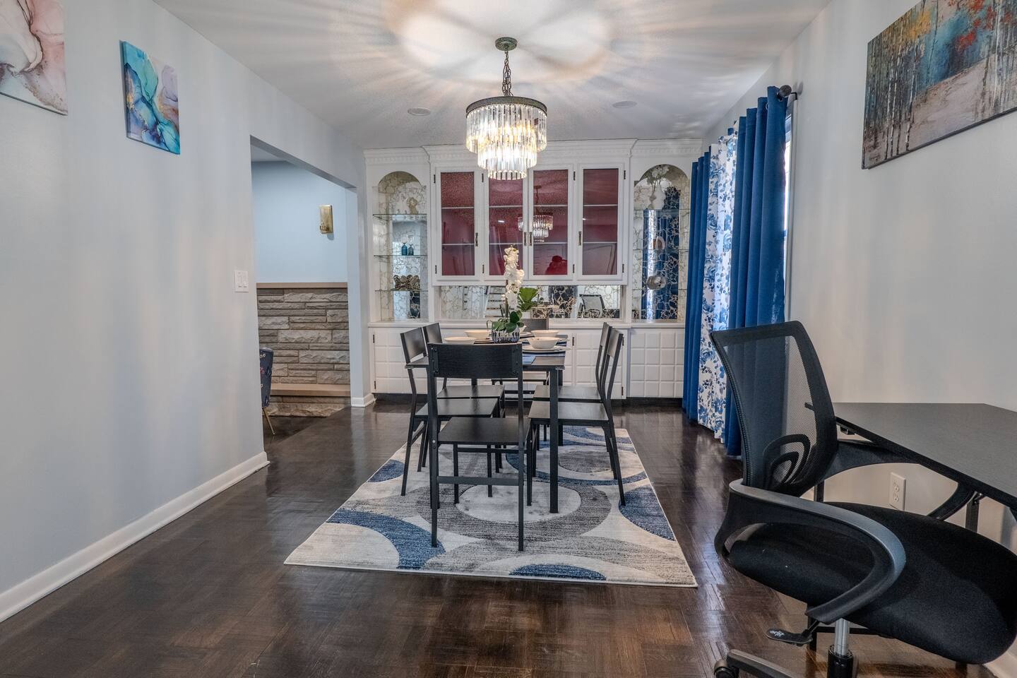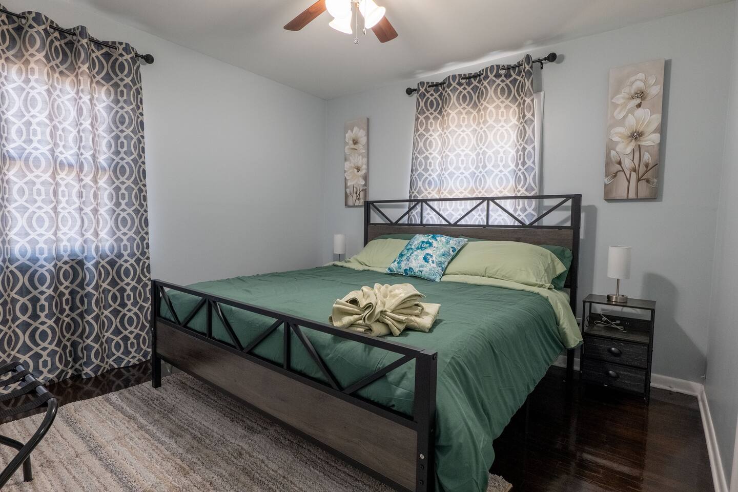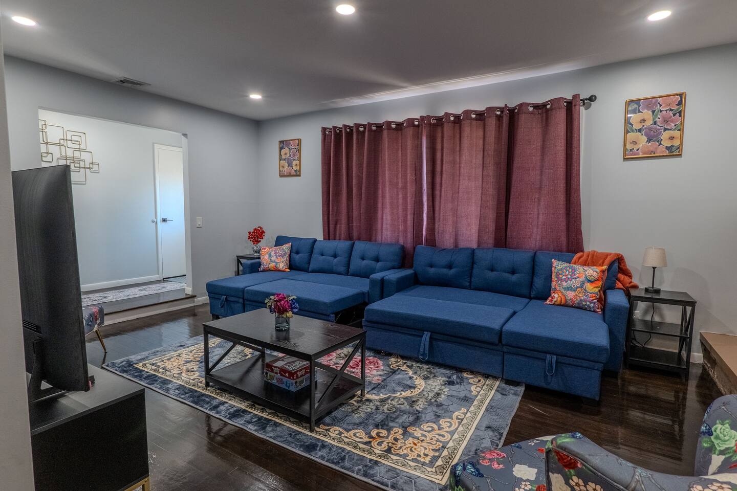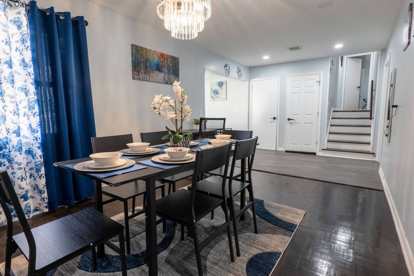 You are welcome to indulge in the comfort and elegance of our spacious three-bedroom apartment for as long as you wish! Immerse yourself in the warm and inviting atmosphere of this charming retreat. Ideally situated in a prime location, this apartment offers the perfect haven for travelers seeking both convenience and relaxation. New York City and Airports - New York City: 43 minutes (22 miles) - Manhattan: 48 minutes (25 miles) - Newark Liberty International Airport: 23 minutes (9.8 miles) - John F. Kennedy International Airport: 1 hour 16 minutes (35 miles) Local Attractions - Rahway River Park: 4 minutes (1.2 miles) - Rahway Train Station: 4 minutes (1.1 miles) - Urban Air Trampoline and Adventure Park: 5 minutes (1.4 miles) - Hyatt Hills Golf Complex: 9 minutes (3.0 miles) - Woodbridge Center: 9 minutes (3.8 miles) - SeaQuest Woodbridge: 10 minutes (4.2 miles) - Lincoln Park: 23 minutes (13 miles) - Prudential Center: 23 minutes (14 miles) - Branch Brook Park: 23 minutes (15 miles) - NJIT: 24 minutes (15 miles) - The Newark Museum of Arts: 25 minutes (15 miles) - Branch Brook Park Roller Skating Center: 25 minutes (15 miles) - Newark Public Library - Main Branch: 25 minutes (15 miles) - Newark-Penn Station: 26 minutes (15 miles) - Liberty State Park: 26 minutes (20 miles) - Red Bull Arena - Sports Illustrated Stadium: 28 minutes (17 miles) - FlyNYON Helicopter Tours: 29 minutes (15 miles) - Statue of Liberty: 32 minutes (18 miles) - MetLife Stadium: 34 minutes (20 miles) - Nickelodeon Universe Theme Park: 34 minutes (21 miles) - Brooklyn Bridge: 41 minutes (23 miles) - Madame Tussauds New York: 42 minutes (24 miles) - Bryant Park: 42 minutes (27 miles) - Lincoln Center for the Performing Arts: 45 minutes (25 miles) - Times Square Ball Drop: 46 minutes (24 miles) - Yankee Stadium: 46 minutes (36 miles) - Rockefeller Center: 48 minutes (25 miles) - Intrepid Museum: 48 minutes (25 miles) - Central Park Zoo: 54 minutes (26 miles) - Bronx Zoo: 55 minutes (38 miles) - LaGuardia Airport: 58 minutes (43 miles) - Citi Field Stadium: 59 minutes (44 miles) Nearby Shopping Centers - Dollar Tree: 2 minutes (0.3 miles) - The Home Depot: 4 minutes (1.3 miles) - Lidl: 8 minutes (3.1 miles) - Walmart: 13 minutes (5.9 miles) - Costco Wholesale: 15 minutes (8.1 miles) - IKEA: 25 minutes (10 miles) - American Dream: 32 minutes (21 miles) Bars and Nightclubs - CubaNu Restaurant & Lounge: 4 minutes (1.0 mile) - Butch Kowal's Tavern: 1 minute (0.2 miles) - Firehouse Eatery & Pub: 2 minutes (0.7 miles) - Barcode Entertainment Complex: 21 minutes (6.2 miles) Nearby Restaurants - Dunkin': 2 minutes (0.2 miles) - Brooklyn Pizza: 2 minutes (0.3 miles) - Madina Halal Restaurant: 2 minutes (0.8 miles) - Stewart's Drive-in: 3 minutes (0.9 miles) - Xperience Kitchen & Cocktails: 6 minutes (1.9 miles) - Denny's: 6 minutes (1.9 miles) Hospitals and Medical Centers - Robert Wood Johnson University Hospital Rahway: 1 minute (0.3 miles) - Atlantic Health Urgent Care at Linden: 6 minutes (2.2 miles) - Care Station Medical Group Linden: 6 minutes (2.3 miles) NO PARTIES, CELEBRATIONS OR GATHERINGS IN THE APT Our Apartment is perfect for: Travel Nurses Students & Faculty Business Professionals Leisure Travels Sports & Concert Lovers Travelers and Explorers Tourists Small Families Whether your journey is for business or pleasure, our place promises to be your sanctuary, facilitating relaxation and rejuvenation. Upon entering, you'll immediately sense a positive energy that uplifts your spirits and creates a welcoming atmosphere. Every corner of this stylish 3-bedroom apt exudes elegance, from its carefully curated design to its thoughtful decor, catering perfectly to both short and long-term stays. Enjoy elegant floors adorned with area rugs, enhancing maneuverability and ensuring your comfort is paramount. The bedrooms provide a serene retreat, ideal for unwinding after a busy day, ensuring a restful night's sleep. LIVING AREA - Gather around in this area to watch your favorite TV shows, and unwind! Comfortable sofas. Smart TV Elegant nesting tables Large stylish rug KITCHEN & DINING Our kitchen has all the essentials mentioned in amenities right at your fingertips! Plus, a cozy dining table with 4 chairs & 4 bar stools are perfectly placed next to the kitchen counter for easy and enjoyable meals. Microwave Stove/Oven Refrigerator/Freezer Sink (Hot/Cold Water) Glasses & Cups Silverware Plates Pots & Pans SLEEPING ARRANGEMENTS 2 BEDROOMS with Queen beds to sleep 8 1 MASTER BEDROOM with King size bed & 1 Sofa Chair to sleep 3 2 SOFA BEDS in living area to sleep 4 Indulge in a restful slumber in our beautifully furnished bedroom, complete with amenities designed to ensure a tranquil and serene stay. Beds with Pillows, Linens, and Sheets Closet with Hangers Night Stands with lamps BATHROOM (Shared) Our stunning bathroom comes fully stocked with all the essential toiletries you'll need for a comfortable stay! Shower Vanity Mirror Toilet Towels Hair Dryer Shampoo & Conditioner Come unwind and savor the comfort of our sleek, contemporary Apt in the heart of Rahway, New Jersey!
