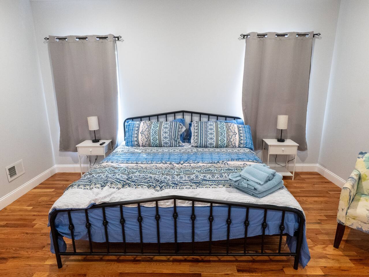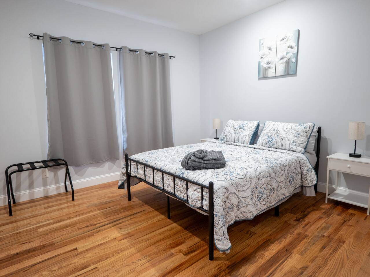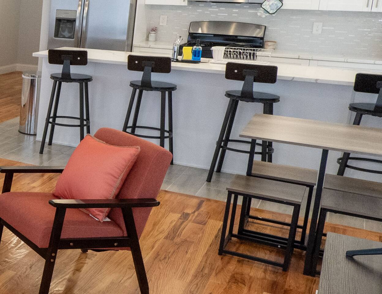 You are warmly invited to experience the serenity and sophistication of our 3 bedroom apartment for as many nights as you desire! Embrace the cozy ambiance in our inviting place. Located in a prime spot, this apartment is a commuter's paradise!! - New York City: 41 minutes (12 miles) - Downtown Newark: 14 minutes (2.7 miles) - Journal Square: 12 minutes (3.5 miles) - Manhattan: 47 minutes (13 miles) - Statue of Liberty: 55 minutes (14 miles) - Empire State Building: 46 minutes (15 miles) - Newark Penn Station: 16 minutes (3 miles) - Times Square: 47 minutes (15 miles) - Branch Brook Park: 4 minutes (0.9 miles) - Cathedral Basilica of the Sacred Heart: 5 minutes (1 mile) - Newark Public Library - Main Branch: 10 minutes (2.1 miles) - The Newark Museum of Arts: 11 minutes (2.1 miles) - Military Park, NJ: 12 minutes (2.3 miles) - The New Jersey Performing Arts Center: 12 minutes (2.3 miles) - Prudential Center: 15 minutes (2.8 miles) - Ironbound: 21 minutes (4.2 miles) - Lincoln Park: 25 minutes (17 miles) - The High Line: 39 minutes (14 miles) - Broadway: 46 minutes (15 miles) - National 9/11 Memorial and Museum: 52 minutes (15 miles) - Central Park: 53 minutes (15 miles) - Top of the Rock: 55 minutes (15 miles) - The Metropolitan Museum of Art: 56 minutes (17 miles) Nearby Shopping Centers: - Costco Wholesale: 29 minutes (18 miles) - Lidl: 33 minutes (12 miles) - Chelsea Market: 44 minutes (15 miles) - American Dream: 26 minutes (11 miles) Bar and Nightclubs: - People's Choice Bar: 9 minutes (1.6 miles) - La Rouge: 14 minutes (2.9 miles) Nearby Restaurants: - La Parada Dominicana Restaurant: 2 minutes (0.4 miles) - Quisqueya's Restaurant: 2 minutes (0.4 miles) - KFC: 2 minutes (0.5 miles) - Burnet BBQ #4: 2 minutes (0.6 miles) - Dickie Dee's: 4 minutes (0.8 miles) - Don Pepe Restaurant: 13 minutes (3.0 miles) - Chateau of Spain: 14 minutes (2.9 miles) Hospitals and Medical Centers: - MetroDoc Urgent Care Belleville: 7 minutes (1.6 miles) - Saint Michael's Medical Center: 9 minutes (1.9 miles) - University Hospital: 10 minutes (1.8 miles) - Mountainside Medical Center: 14 minutes (5.5 miles) NO PARTIES, CELEBRATIONS OR GATHERINGS IN THE APT Our Apartment is perfect for: Travel Nurses Students & Faculty Business Professionals Leisure Travels Sports & Concert Lovers Travelers and Explorers Tourists Small Families Whether your journey is for business or pleasure, our place promises to be your sanctuary, facilitating relaxation and rejuvenation. Upon entering, you'll immediately sense a positive energy that uplifts your spirits and creates a welcoming atmosphere. Every corner of this stylish 3-bedroom apt exudes elegance, from its carefully curated design to its thoughtful decor, catering perfectly to both short and long-term stays. Enjoy elegant floors adorned with area rugs, enhancing maneuverability and ensuring your comfort is paramount. The bedrooms provide a serene retreat, ideal for unwinding after a busy day, ensuring a restful night's sleep. LIVING AREA - Gather around in this area to watch your favorite TV shows, and unwind! Comfortable sofas. Smart TV Elegant nesting tables Large stylish rug KITCHEN & DINING Our kitchen has all the essentials mentioned in amenities right at your fingertips! Plus, a cozy dining table with 4 chairs & 4 bar stools are perfectly placed next to the kitchen counter for easy and enjoyable meals. Microwave Stove/Oven Refrigerator/Freezer Sink (Hot/Cold Water) Glasses & Cups Silverware Plates Pots & Pans SLEEPING ARRANGEMENTS 2 BEDROOMS with Queen beds for 4 - Shared bathroom & Closets 1 MASTER BEDROOM with King size bed for 2 - Attached bathroom & Walk in Closet 2 SOFA BEDS in living area to sleep 4 Indulge in a restful slumber in our beautifully furnished bedroom, complete with amenities designed to ensure a tranquil and serene stay. Beds with Pillows, Linens, and Sheets Closet with Hangers Night Stands with lamps BATHROOM Our stunning bathroom comes fully stocked with all the essential toiletries you'll need for a comfortable stay! Shower Vanity Mirror Toilet Towels Hair Dryer Shampoo & Conditioner Come unwind and savor the comfort of our sleek, contemporary Apt in the heart of Newark, New Jersey!