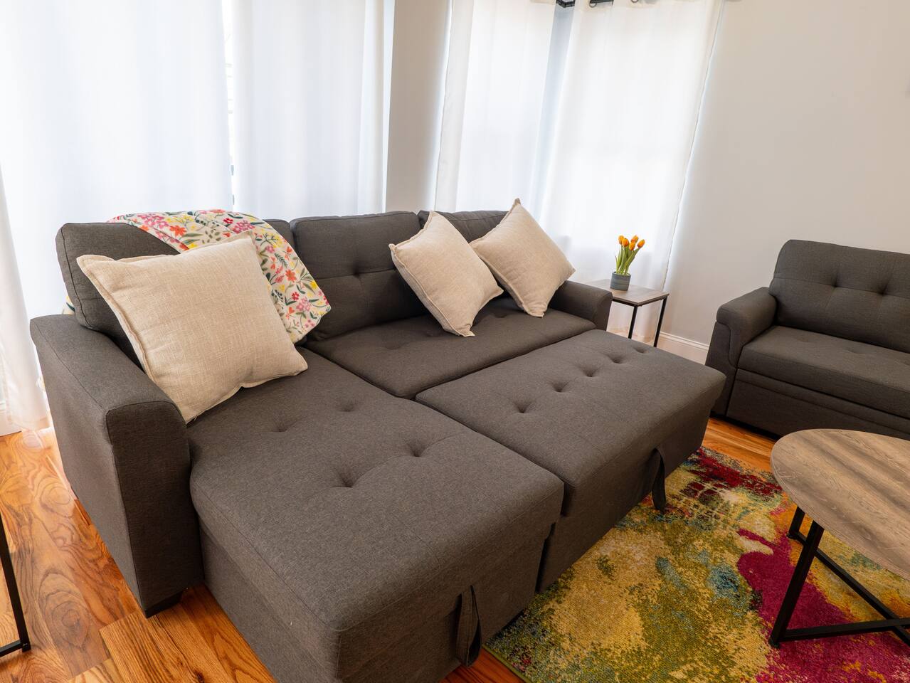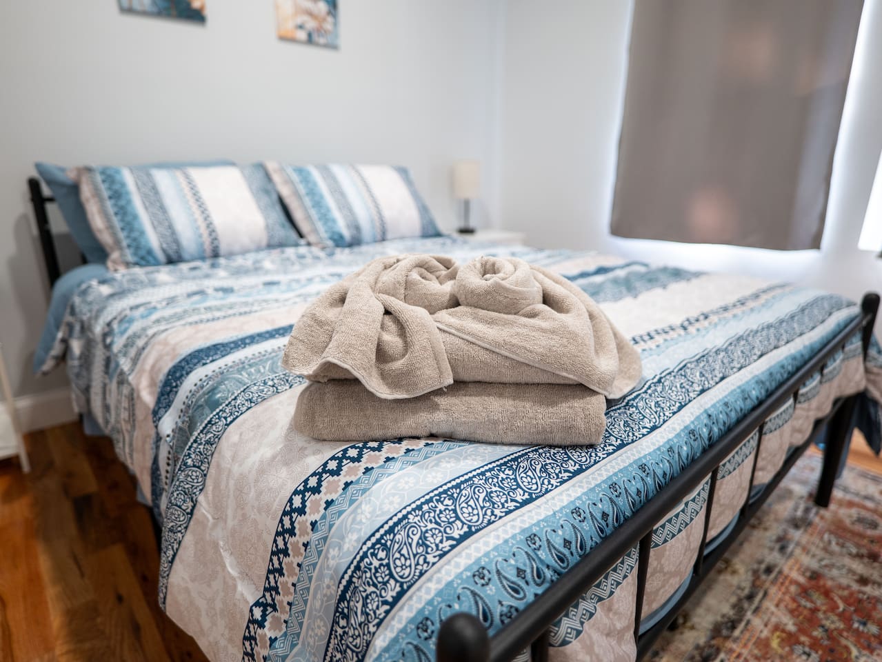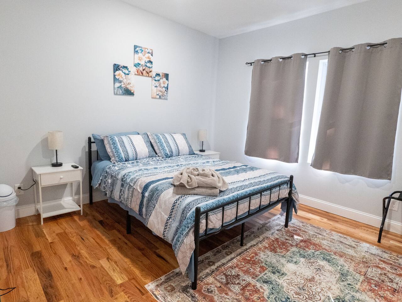 You are warmly invited to experience the serenity and sophistication of our 3 bedroom apartment for as many nights as you desire! Embrace the cozy ambiance in our inviting place. Located in a prime spot, this apartment is a commuter's paradise!! - New York City: 41 minutes (12 miles) - Downtown Newark: 14 minutes (2.7 miles) - Journal Square: 12 minutes (3.5 miles) - Manhattan: 47 minutes (13 miles) - Statue of Liberty: 55 minutes (14 miles) - Empire State Building: 46 minutes (15 miles) - Newark Penn Station: 16 minutes (3 miles) - Times Square: 47 minutes (15 miles) - Branch Brook Park: 4 minutes (0.9 miles) - Cathedral Basilica of the Sacred Heart: 5 minutes (1 mile) - Newark Public Library - Main Branch: 10 minutes (2.1 miles) - The Newark Museum of Arts: 11 minutes (2.1 miles) - Military Park, NJ: 12 minutes (2.3 miles) - The New Jersey Performing Arts Center: 12 minutes (2.3 miles) - Prudential Center: 15 minutes (2.8 miles) - Ironbound: 21 minutes (4.2 miles) - Lincoln Park: 25 minutes (17 miles) - The High Line: 39 minutes (14 miles) - Broadway: 46 minutes (15 miles) - National 9/11 Memorial and Museum: 52 minutes (15 miles) - Central Park: 53 minutes (15 miles) - Top of the Rock: 55 minutes (15 miles) - The Metropolitan Museum of Art: 56 minutes (17 miles) Nearby Shopping Centers: - Costco Wholesale: 29 minutes (18 miles) - Lidl: 33 minutes (12 miles) - Chelsea Market: 44 minutes (15 miles) - American Dream: 26 minutes (11 miles) Bar and Nightclubs: - People's Choice Bar: 9 minutes (1.6 miles) - La Rouge: 14 minutes (2.9 miles) Nearby Restaurants: - La Parada Dominicana Restaurant: 2 minutes (0.4 miles) - Quisqueya's Restaurant: 2 minutes (0.4 miles) - KFC: 2 minutes (0.5 miles) - Burnet BBQ #4: 2 minutes (0.6 miles) - Dickie Dee's: 4 minutes (0.8 miles) - Don Pepe Restaurant: 13 minutes (3.0 miles) - Chateau of Spain: 14 minutes (2.9 miles) Hospitals and Medical Centers: - MetroDoc Urgent Care Belleville: 7 minutes (1.6 miles) - Saint Michael's Medical Center: 9 minutes (1.9 miles) - University Hospital: 10 minutes (1.8 miles) - Mountainside Medical Center: 14 minutes (5.5 miles) NO PARTIES, CELEBRATIONS OR GATHERINGS IN THE APT Our Apartment is perfect for: Travel Nurses Students & Faculty Business Professionals Leisure Travels Sports & Concert Lovers Travelers and Explorers Tourists Small Families Whether your journey is for business or pleasure, our place promises to be your sanctuary, facilitating relaxation and rejuvenation. Upon entering, you'll immediately sense a positive energy that uplifts your spirits and creates a welcoming atmosphere. Every corner of this stylish 3-bedroom apt exudes elegance, from its carefully curated design to its thoughtful decor, catering perfectly to both short and long-term stays. Enjoy elegant floors adorned with area rugs, enhancing maneuverability and ensuring your comfort is paramount. The bedrooms provide a serene retreat, ideal for unwinding after a busy day, ensuring a restful night's sleep. LIVING AREA - Gather around in this area to watch your favorite TV shows, and unwind! Comfortable sofas. Smart TV Elegant nesting tables Large stylish rug KITCHEN & DINING Our kitchen has all the essentials mentioned in amenities right at your fingertips! Plus, a cozy dining table with 4 chairs & 4 bar stools are perfectly placed next to the kitchen counter for easy and enjoyable meals. Microwave Stove/Oven Refrigerator/Freezer Sink (Hot/Cold Water) Glasses & Cups Silverware Plates Pots & Pans SLEEPING ARRANGEMENTS 2 BEDROOMS with Queen beds for 4 - Shared bathroom & Closets 1 MASTER BEDROOM with King size bed for 2 - Attached bathroom & Walk in Closet 2 SOFA BEDS in living area to sleep 4 Indulge in a restful slumber in our beautifully furnished bedroom, complete with amenities designed to ensure a tranquil and serene stay. Beds with Pillows, Linens, and Sheets Closet with Hangers Night Stands with lamps BATHROOM Our stunning bathroom comes fully stocked with all the essential toiletries you'll need for a comfortable stay! Shower Vanity Mirror Toilet Towels Hair Dryer Shampoo & Conditioner Come unwind and savor the comfort of our sleek, contemporary Apt in the heart of Newark, New Jersey!