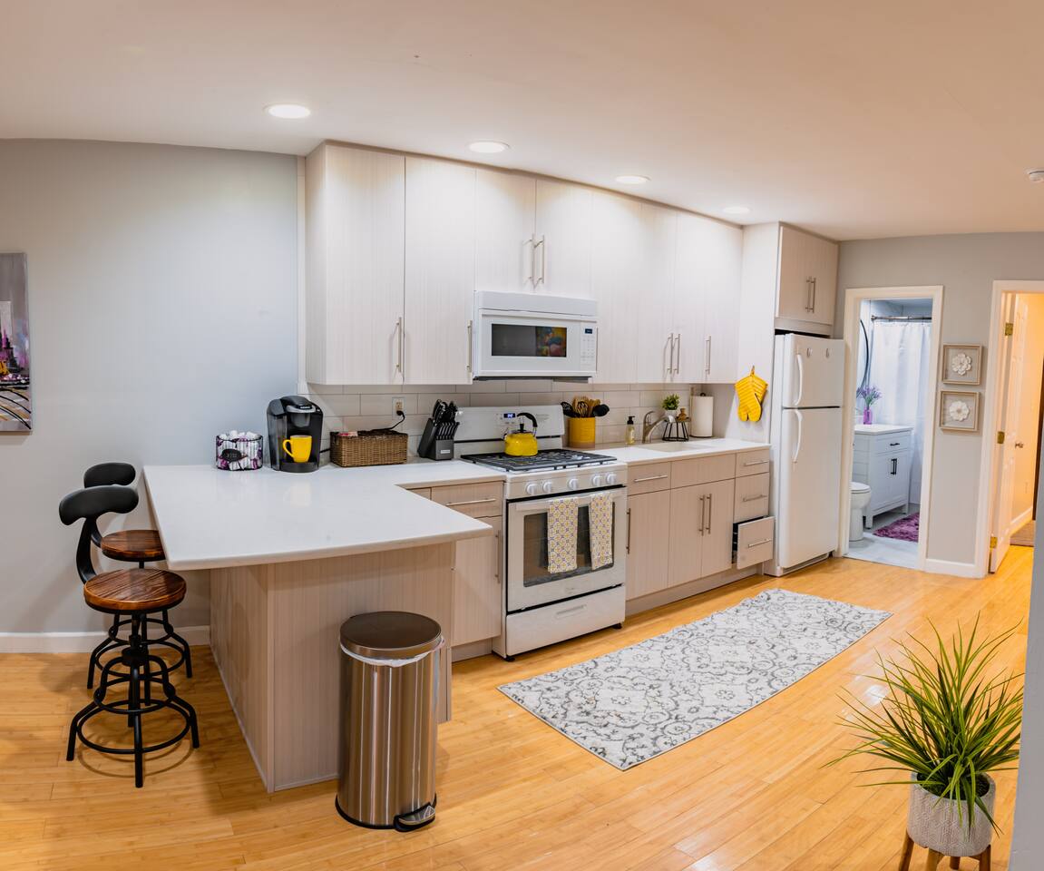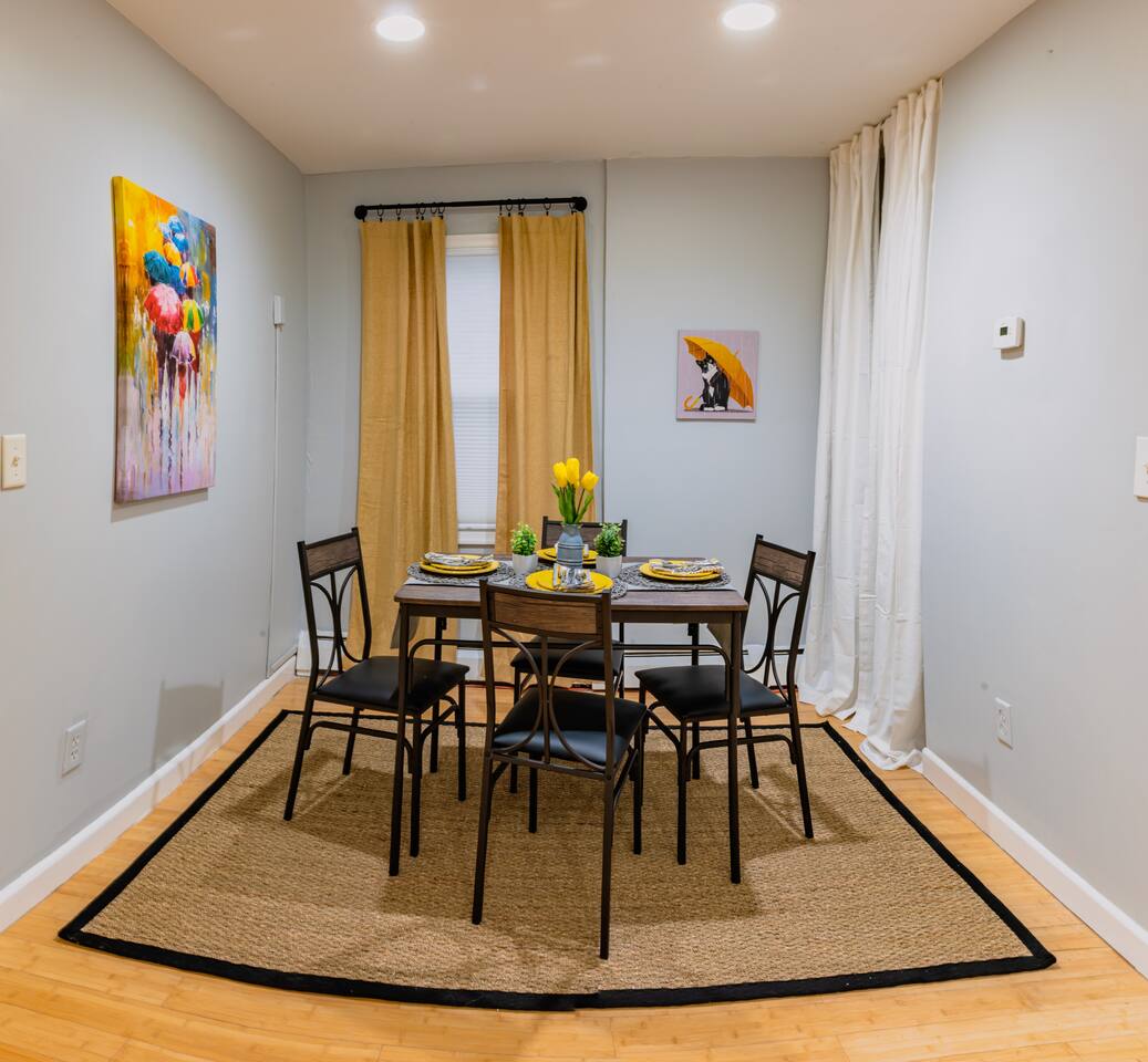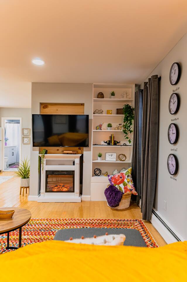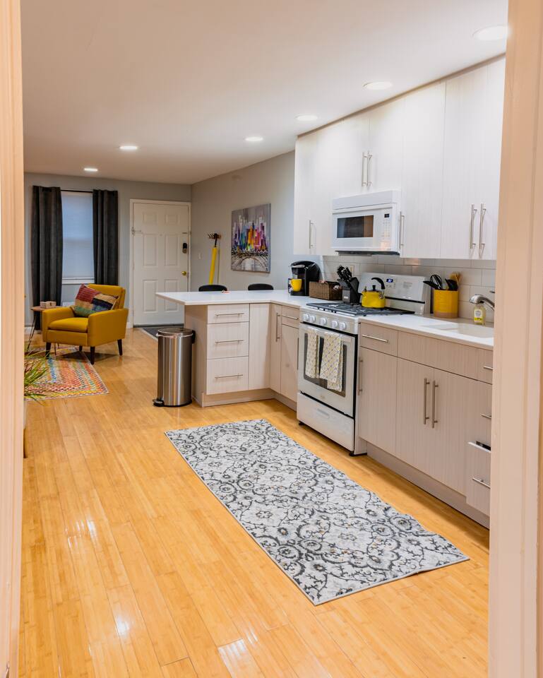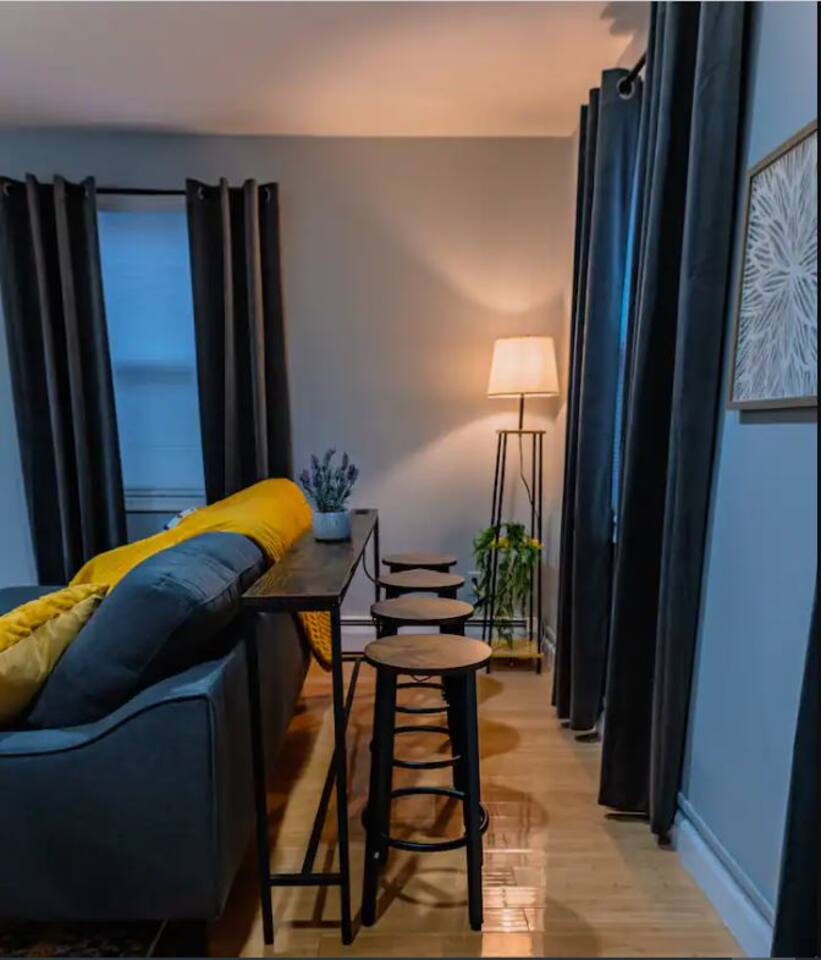 You are invited to enjoy our blissful and elegant 1 BDR Condo for as many nights as you'd like! Let's get Cozy with the fireplace turned on and a warm blanket wrapped around in the living room! This prime location is a commuter's dream!! **~ 15 mins from NYC **~8 mins from Tear Drop Memorial **~18 mins from NJIT **~2 minutes walk from the famous Bayonne Broadway Diner **~2 mins from Bayonne Crossing Way which includes a Walmart, Micheals, a dollar store, Sonic, Panda Express and a gas station. **~2 mins from Lidl and Cosco which carries all your grocery needs **~12 mins from EWR (Newark) Airport **~11 mins from Cape Liberty Cruise Port **~20 mins from American Dream Mall **~15 mins from NJPAC **~14 mins from Prudential Center **~17 mins from Red Bull Arena **~8 mins from light rail -->Newport --> Path train to NYC *xX*NO PARTIES OR LARGE GATHERINGS OF ANY KIND IN THE CONDO*Xx* Our Condo is perfect for **~Travel Nurses **~Students & Faculty **~Business Professionals **~Leisure Travels **~Sports & Concert Lovers **~Travelers and Explorers Whether you are traveling for business or pleasure let our condo be the one to help you unwind and reach a state of relaxation. As soon as you step foot inside you will feel a positive energy uplifting your mood and giving you good vibes! The elegant design and decor elaborate throughout the entire interior of this stylish 1 BDR Condo, making it ideal for either a short or long-term stay! {*~Elegant wood floors throughout the entire condo with area rugs which make it easier to manoeuvre around to get your setting the way you want for your comfort!~*} To top it off a bedroom which offers a sense of relaxation and tranquility after a long day to rest and get you comfortable! {*~LIVING ROOM~*}! Gather around in this area to watch your favourite TV shows, and unwind! **~ Comfortable sofa which turns into a sleeper sofa **~ Smart TV with access to stream services **~ Elegant nesting table **~ Behind the sofa Bar table with 4 Stools **~ Large stylish rug **~ Different time zone clocks {*~KITCHEN & DINING~*} Whether you like to cook up a storm in the kitchen or have some take out all your daily use essentials are at the tip of your hands in the kitchen cabinets! 2 additional bar stools are located right next to the kitchen counter to offer workspace. **~Microwave **~Stove/Oven **~Refrigerator/Freezer **~Tea Kettle **~ Coffee Station **~Toaster **~Sink (Hot/Cold Water) **~ Glasses & Mugs **~ Silverware **~ Plates **~ Pots & Pans Sit down at the 4 place setting dining table and enjoy a warm meal! {*~SLEEPING ARRANGEMENTS~*} 1 BEDROOM + 1 LIVING ROOM SLEEPER SOFA Get your beauty rest in our tastefully furnished bedroom equipped with amenities that will make for a peaceful stay! **~ Queen Size Bed with Pillows, Linens, and Sheets **~ Mirrored Closet with Hangers and Extra Linens, Sheets, and Pillows **~ Extra Storage Space behind Head Rest **~ Night Stands with lamps {*~BATHROOM~*} Our beautiful lavender-themed bathroom is stocked with all the essential toiletries that you would need to use! **~Bathtub with a Shower **~ Vanity **~ Mirror **~ Toilet **~ Towels **~ Hair Dryer **~ Essential Toiletries Come to enjoy and relax in our modern contemporary condo in Uptown of Bayonne New Jersey!