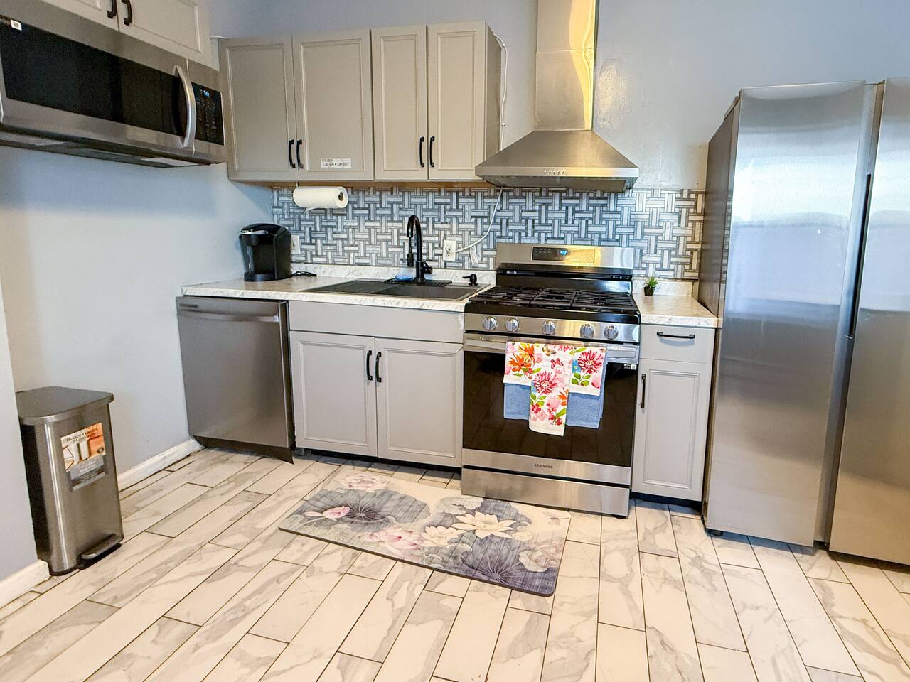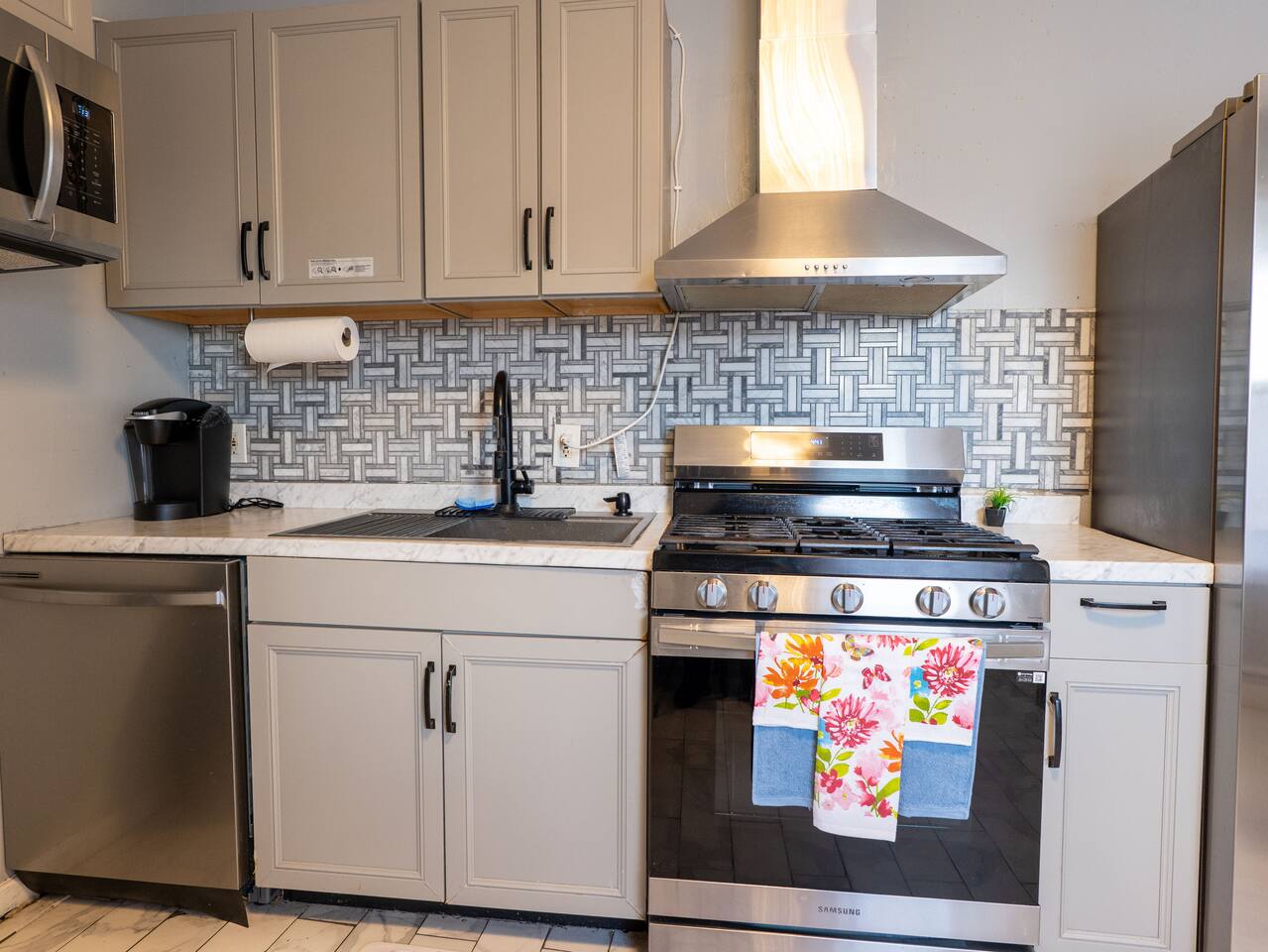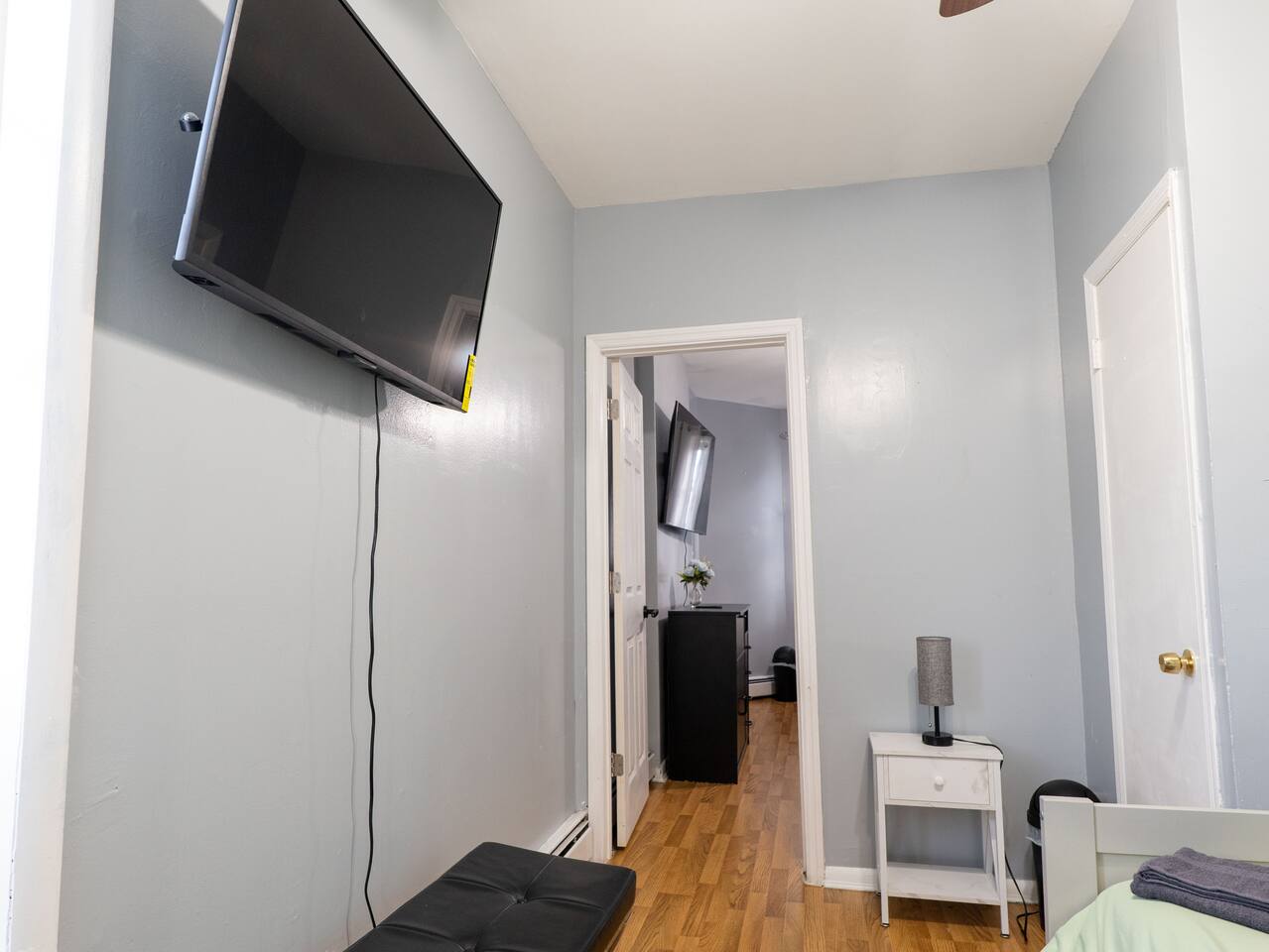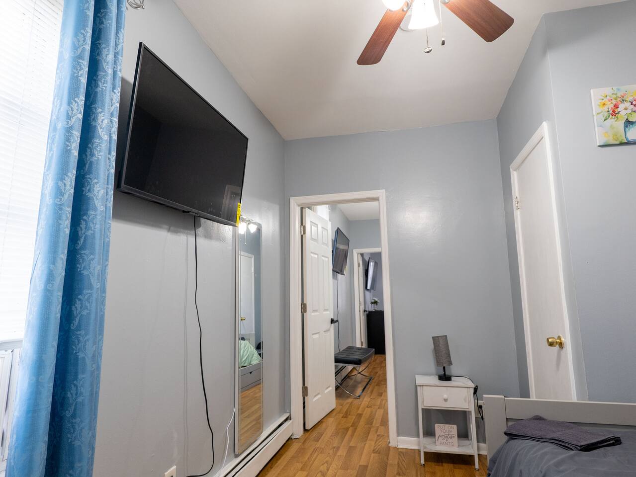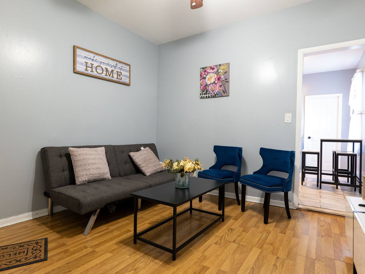 We invite you to immerse yourself in the elegance and tranquility of our 3-bedroom RAILROAD Apartment 3 for as many nights as you wish! Relax in the warm and welcoming ambiance of our thoughtfully designed space. Perfectly situated in a prime location, this apartment offers unbeatable convenience for commuters! Famous Attractions: 1. New York City: 41 min (15.5 miles) 2. Newark Liberty International Airport: 8 min (2.7 miles) 3. Manhattan: 48 min (19.8 miles) 4. Times Square: 49 min (18.8 miles) 5. Statue of Liberty: 25 min (12.5 miles) 6. Journal Square: 30 min (12.3 miles) 7. Downtown Elizabeth: 9 min (1.3 miles) 8. Newark Penn Station: 20 min (6.7 miles) 9. Green Acres Park: 37 min (20.9 miles) 10. Warinanco Park: 12 min (3.3 miles) 11. St. John's Episcopal Church: 10 min (1.6 miles) 12. Boxwood Hall State Historic Site: 6 min (1.1 miles) 13. Elizabeth Public Library: 9 min (1.9 miles) 14. Ritz Theatre & Performing Arts Center: 7 min (1.3 miles) 15. Liberty Hall Museum: 16 min (3.4 miles) 16. Mattano Park: 5 min (0.9 mile) 17. Newark Public Library: 20 min (7.3 miles) 18. The Newark Museum of Arts: 20 min (7.2 miles) 19. Military Park, NJ: 18 min (6.7 miles) 20. The New Jersey Performing Arts Center: 20 min (6.9 miles) 21. Prudential Center: 16 min (6.5 miles) 22. Ironbound: 9 min (1.4 miles) 23. National 9/11 Memorial and Museum: 41 min (16.1 miles) 24. The Ballantine House: 24 min (7.0 miles) 25. Park Ave Station: 35 min (8.6 miles) 26. Cathedral Basilica of the Sacred Heart: 29 min (8.2 miles) 27. The Jewish Museum of New Jersey: 30 min (7.8 miles) 28. Dreyfuss Planetarium: 24 min (7.0 miles) 29. Brooklyn Bridge: 38 min (15.7 miles) 30. Bryant Park: 41 min (19.0 miles) 31. Bronx Zoo: 56 min (31.7 miles) 32. Times Square Ball: 39 min (18.7 miles) 33. Yankee Stadium: 47 min (26.1 miles) 34. Rockefeller Center: 44 min (19.2 miles) 35. Intrepid Museum: 42 min (19.8 miles) 36. Madame Tussauds New York: 36 min (18.6 miles) Restaurants: 1. Olga's Place: 18 min (0.8 mile) 2. DEL PORTO ITALIAN RESTAURANT: 5 min (1.0 mile) 3. RiverBay Diner: 4 min (0.8 mile) 4. George's Lunch: 4 min (1.2 miles) 5. Jacare Do Brasil Restaurant: 4 min (1.1 mile) 6. El Mirador Restaurant: 4 min (0.9 mile) 7. The Halal Zone: 9 min (1.7 miles) 8. New York Fried Chicken & Pizza: 9 min (1.9 miles) 9. Lola Restaurant - Comida Hondureña: 4 min (0.9 mile) 10. Aji Limo Peruvian Restaurant: 2 min (0.4 mile) 11. Cadejo Restaurant & Bakery: 1 min (325 ft) 12. Baleadas Supreme Café 2: 4 min (0.9 mile) 13. Spanish Restaurant 2: 3 min (0.5 mile) Nearby Shopping Centers & Malls: 1. Walmart Supercenter:24 min (5.7 miles) 2. The Mills at Jersey Gardens: 6 min (1.6 miles) 3. Jersey Gardens: 6 min (1.8 miles) 4. Elizabeth Mini Mall: 3 min (0.6 mile) 5. The Elizabeth Center at 13A: 10 min (2.6 miles) 6. Menlo Park Mall: 28 min (15.3 miles) 7. Cc New Jersey: 6 min (1.8 miles) 8. The Home Depot:56 min (16.6 miles) 9. Costco:56 min (29.5 miles) 10. Woodbridge Center: 27 min (14.3 miles) Bars And Nightclubs: 1. Pier 73: 4 min (1.1 miles) 2. Kucaramakara: 4 min (0.9 mile) 3. Bamboleo: 3 min (0.8 mile) 4. Monseñor: 4 min (0.7 mile) 5. Aquarius Bar: 1 min (0.2 mile) 6. The Port Tavern: 4 min (1.0 mile) 7. Don Felix Bar & Restaurant: 3 min (0.5 mile) 8. The Penthouse: 8 min (1.9 miles) Medical Centers, Hospitals & Healthcare: 1. Trinitas Regional Medical Center - New Point Campus: 1 min (0.4 mile) 2. Newark Community Health Centers: 13 min (4.0 miles) 3. RWJBarnabas Health at Elizabeth: 8 min (1.7 miles) 4. Saint Michael's Medical Center: 21 min (7.4 miles) 5. Central Jersey Medical Center Carteret: 18 min (7.3 miles) 6. AFC Urgent Care US Route 1-9: 6 min (1.0 mile) 7. Saint Michael's Medical Center: 27 min (7.2 miles) NO PARTIES, CELEBRATIONS OR GATHERINGS IN THE APT Our Apartment is perfect for: Travel Nurses Students & Faculty Business Professionals Leisure Travels Sports & Concert Lovers Travelers and Explorers Tourists Small Families Whether your journey is for business or pleasure, our place promises to be your sanctuary, facilitating relaxation and rejuvenation. Upon entering, you'll immediately sense a positive energy that uplifts your spirits and creates a welcoming atmosphere. Every corner of this stylish 3-bedroom apt exudes elegance, from its carefully curated design to its thoughtful decor, catering perfectly to both short and long-term stays. Enjoy elegant floors, ensuring your comfort is paramount. The bedrooms provide a serene retreat, ideal for unwinding after a busy day, ensuring a restful night's sleep. LIVING AREA - Gather around in this area to watch your favorite TV shows, and unwind! Comfortable sofas. Smart TV Elegant nesting tables KITCHEN & DINING Our kitchen has all the essentials mentioned in amenities right at your fingertips! Plus, a cozy dining table with 4 stools are perfectly placed next to the kitchen for easy and enjoyable meals. Microwave Stove/Oven Refrigerator/Freezer Sink (Hot/Cold Water) Glasses & Cups Silverware Plates Pots & Pans SLEEPING ARRANGEMENTS 2 BEDROOMS with PULL OUT Queen beds for 4 Shared bathroom & Closets 1 MASTER BEDROOM with King size bed for 2 - Shared bathroom & Closet 1 SOFA BED in living area to sleep 1 Indulge in a restful slumber in our beautifully furnished bedrooms, complete with amenities designed to ensure a tranquil and serene stay. Beds with Pillows, Linens, and Sheets Closet with Hangers Night Stands with lamps BATHROOM Our stunning shared bathroom comes fully stocked with all the essential toiletries you'll need for a comfortable stay! Shower Vanity Mirror Toilet Towels Hair Dryer Shampoo & Conditioner Come unwind and savor the comfort of our sleek, contemporary Apt in the heart of Elizabeth, New Jersey!