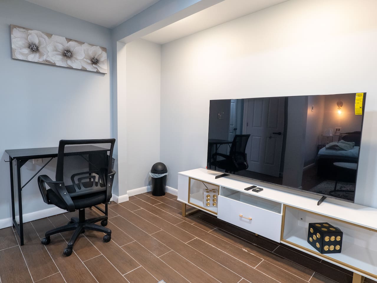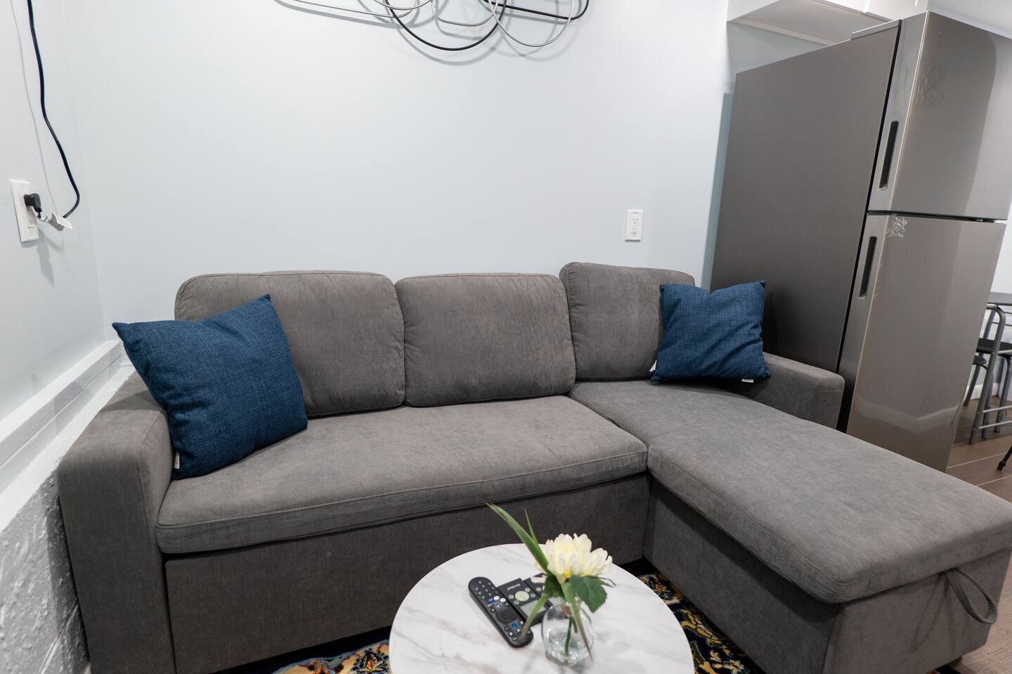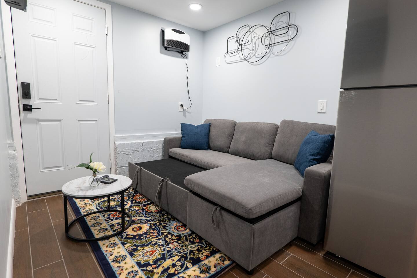 You are welcome to indulge in the comfort and elegance of our spacious three-bedroom apartment for as long as you wish! Immerse yourself in the warm and inviting atmosphere of this charming retreat. Ideally situated in a prime location, this apartment offers the perfect haven for travelers seeking both convenience and relaxation. New York City and Airports - New York City: 43 minutes (22 miles) - Manhattan: 48 minutes (25 miles) - Newark Liberty International Airport: 23 minutes (9.8 miles) - John F. Kennedy International Airport: 1 hour 16 minutes (35 miles) Local Attractions - Rahway River Park: 4 minutes (1.2 miles) - Rahway Train Station: 4 minutes (1.1 miles) - Urban Air Trampoline and Adventure Park: 5 minutes (1.4 miles) - Hyatt Hills Golf Complex: 9 minutes (3.0 miles) - Woodbridge Center: 9 minutes (3.8 miles) - SeaQuest Woodbridge: 10 minutes (4.2 miles) - Lincoln Park: 23 minutes (13 miles) - Prudential Center: 23 minutes (14 miles) - Branch Brook Park: 23 minutes (15 miles) - NJIT: 24 minutes (15 miles) - The Newark Museum of Arts: 25 minutes (15 miles) - Branch Brook Park Roller Skating Center: 25 minutes (15 miles) - Newark Public Library - Main Branch: 25 minutes (15 miles) - Newark-Penn Station: 26 minutes (15 miles) - Liberty State Park: 26 minutes (20 miles) - Red Bull Arena - Sports Illustrated Stadium: 28 minutes (17 miles) - FlyNYON Helicopter Tours: 29 minutes (15 miles) - Statue of Liberty: 32 minutes (18 miles) - MetLife Stadium: 34 minutes (20 miles) - Nickelodeon Universe Theme Park: 34 minutes (21 miles) - Brooklyn Bridge: 41 minutes (23 miles) - Madame Tussauds New York: 42 minutes (24 miles) - Bryant Park: 42 minutes (27 miles) - Lincoln Center for the Performing Arts: 45 minutes (25 miles) - Times Square Ball Drop: 46 minutes (24 miles) - Yankee Stadium: 46 minutes (36 miles) - Rockefeller Center: 48 minutes (25 miles) - Intrepid Museum: 48 minutes (25 miles) - Central Park Zoo: 54 minutes (26 miles) - Bronx Zoo: 55 minutes (38 miles) - LaGuardia Airport: 58 minutes (43 miles) - Citi Field Stadium: 59 minutes (44 miles) Nearby Shopping Centers - Dollar Tree: 2 minutes (0.3 miles) - The Home Depot: 4 minutes (1.3 miles) - Lidl: 8 minutes (3.1 miles) - Walmart: 13 minutes (5.9 miles) - Costco Wholesale: 15 minutes (8.1 miles) - IKEA: 25 minutes (10 miles) - American Dream: 32 minutes (21 miles) Bars and Nightclubs - CubaNu Restaurant & Lounge: 4 minutes (1.0 mile) - Butch Kowal's Tavern: 1 minute (0.2 miles) - Firehouse Eatery & Pub: 2 minutes (0.7 miles) - Barcode Entertainment Complex: 21 minutes (6.2 miles) Nearby Restaurants - Dunkin': 2 minutes (0.2 miles) - Brooklyn Pizza: 2 minutes (0.3 miles) - Madina Halal Restaurant: 2 minutes (0.8 miles) - Stewart's Drive-in: 3 minutes (0.9 miles) - Xperience Kitchen & Cocktails: 6 minutes (1.9 miles) - Denny's: 6 minutes (1.9 miles) Hospitals and Medical Centers - Robert Wood Johnson University Hospital Rahway: 1 minute (0.3 miles) - Atlantic Health Urgent Care at Linden: 6 minutes (2.2 miles) - Care Station Medical Group Linden: 6 minutes (2.3 miles) NO PARTIES, CELEBRATIONS OR GATHERINGS IN THE APT Our Apartment is perfect for: Travel Nurses Students & Faculty Business Professionals Leisure Travels Sports & Concert Lovers Travelers and Explorers Tourists Small Families Whether your journey is for business or pleasure, our place promises to be your sanctuary, facilitating relaxation and rejuvenation. Upon entering, you'll immediately sense a positive energy that uplifts your spirits and creates a welcoming atmosphere. Every corner of this stylish 1-bedroom studio apt exudes elegance, from its carefully curated design to its thoughtful decor, catering perfectly to both short and long-term stays. Enjoy elegant floors adorned with area rugs, enhancing maneuverability and ensuring your comfort is paramount. The bedrooms provide a serene retreat, ideal for unwinding after a busy day, ensuring a restful night's sleep. LIVING AREA - Gather around in this area to watch your favorite TV shows, and unwind! Comfortable sofas. Smart TV Elegant tables Large stylish rug KITCHENETTE & DINING Our kitchenette has all the essentials mentioned in amenities right at your fingertips! Plus, a cozy dining table with 2 chairs are perfectly placed next to the kitchen counter for easy and enjoyable meals. Microwave Electric Stove Refrigerator/Freezer Sink (Hot/Cold Water) Glasses & Cups Silverware Plates Basic Pots & Pans SLEEPING ARRANGEMENTS 1 SPACIOUS BEDROOM with King size bed for 2 - Separate bathroom 1 SINGLE SOFA BED in same BEDROOM to sleep 1 1 DOUBLE SOFA BED in living area to sleep 2 Indulge in a restful slumber in our beautifully furnished bedroom, complete with amenities designed to ensure a tranquil and serene stay. Beds with Pillows, Linens, and Sheets Night Stands with lamps BATHROOM Our stunning bathroom comes fully stocked with all the essential toiletries you'll need for a comfortable stay! Shower Vanity Mirror Toilet Towels Hair Dryer Shampoo & Conditioner Come unwind and savor the comfort of our sleek, contemporary Apt in the heart of Newark, New Jersey!